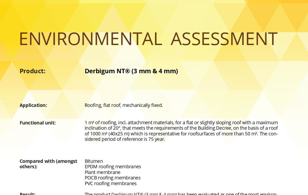 The Dutch Institute for Building Biology and Ecology, NIBE, examined as an independent research organization the life cycle analysis of the Derbigum membrane and came with a remarkable result.